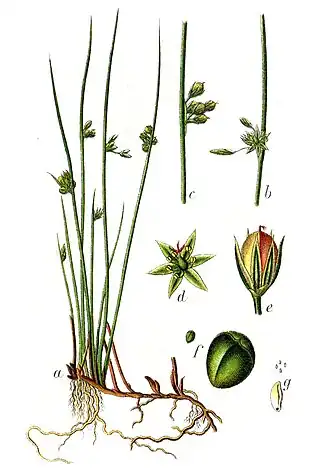 - ↑ a b c d e f g h i j k Dietrich Podlech: Familie Juncaceae. In: Gustav Hegi: Illustrierte Flora von Mitteleuropa. 3. Auflage, Band II, Teil 1. Verlag Paul Parey, Berlin und Hamburg 1980, ISBN 3-489-54020-4, S. 361–362.