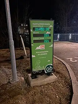 - ↑ a b c d Bicycle barometers (bike counters). In: ec.europa.eu (Memento vom 20. Juli 2019 im Internet Archive). Europäische Kommission, archiviert vom am 20. Juli 2019; abgerufen am 27. April 2020 (englisch).