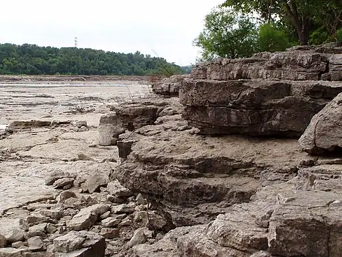 ![]() fossil bed und Ufer der Stromschnellen im Ohio River bei Niedrigwasser | ||