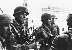 Die Fallschirmjäger der Wehrmacht waren eine Waffengattung der deutschen Luftwaffe. Ihre Aufstellung begann 1935/36 aus der Polizeiabteilung z. b. V. Wecke, der Landespolizeigruppe General Göring umbenannt 1935 in Regiment General Göring und Teilen der SA-Standarte „Feldherrnhalle“. Die Fallschirmjäger bezeichneten sich als „des Führers kühnste Elitetruppe“.[1]