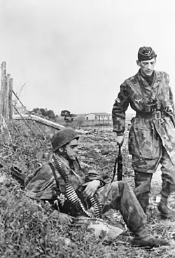Während der Invasion in der Normandie verteidigten unter anderem Fallschirmjäger der 2. Fallschirmjäger-Division und des Fallschirmjäger-Regiments 6 der 91. Luftlande-Infanterie-Division die Strände in der Normandie und die nachmalige Festung Brest. Während der Landung der Alliierten in der Normandie bei der Operation Overlord fand zur Verstärkung des Luftwaffen-Funkstützpunktes „Diestelfink“ mit einer Würzburg-Riese-Radaranlage, die für die Aufklärung und Bekämpfung feindlicher Luftstreitkräfte, auch für die Reichsluftverteidigung wichtig war, bei Douvres-la-Délivrande eine taktische Verstärkung durch Luftlandung nach Fallschirmsprung statt.[14]