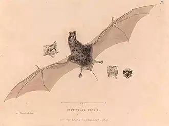 Zeichnung der Faltlippen-Bulldoggfledermaus von 1824 | ||||||||||||