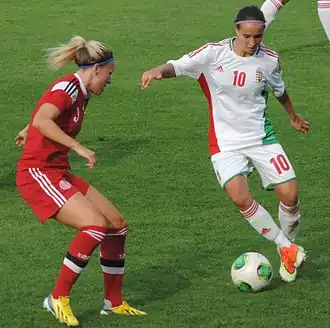 Fanny Vágó (rechts) im Nationaltrikot (2013)