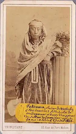 | Ramanetaka Mohamed bin Saidi Hamadi Makadara | Sultanin von Mohéli 1842-1865 1874–1878 | Mohamed bin Saidi Hamadi Makadara Abderremane bin Saidi Hamadi Makadara |