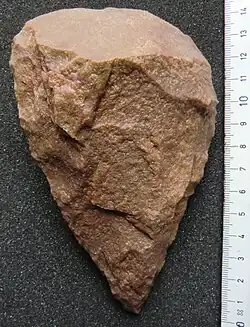 Der altsteinzeitliche Faustkeil von Wallerfangen ist einer der ältesten Belege zur Siedlungsgeschichte der Gemeinde Wallerfangen und des Saargaus.[1] Er ist einer von lediglich vier vollständig geborgenen Faustkeilen im Saarland, wobei nur noch ein weiteres Stück ebenfalls aus Geröll-Quarzit gefertigt ist.
