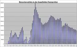 Seit 1914 haben über 18 Millionen Menschen (Stand: 2016) das Bergwerk besichtigt; darunter bekannte Persönlichkeiten. Der damalige Reichspräsident Friedrich Ebert besichtigte die Feengrotten am 18. August 1919. Die Saalfelder Feengrotten werden jedes Jahr von ungefähr 160.000 Touristen besucht und sind damit die zweithäufigste besuchte deutsche Schauhöhle nach der Atta-Höhle.[Anmerkung 1]