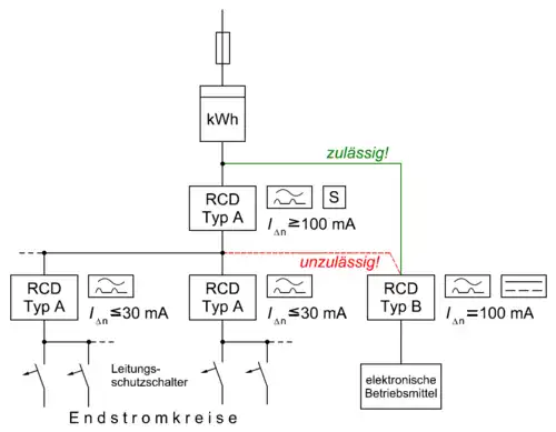- ↑ Typenvielfalt von Fehlerstrom-Schutzeinrichtungen (RCD). 10. Mai 2020, abgerufen am 12. Juli 2021.