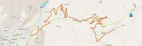 ![]() Ehemaliger Streckenverlauf Gradsko–Prilep auf einer Karte von 2020 | |||||||||||||||||||||||||||||||||