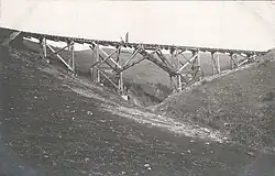 ![]() ![]() Illing-Heeresfeldbahn-Lokomotive auf der Brücke bei km 36,7[1] | |||||||||||||