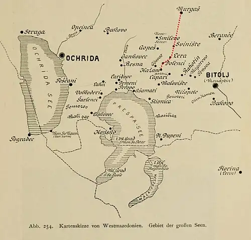 - ↑ a b c Franz Doflein (1873-1924): Mazedonien: Erlebnisse und Beobachtungen eines Naturforschers im Gefolge des deutschen Heeres. Verlag von Gustav Fischer, Jena, 1921. S. 515, 516 und 454.