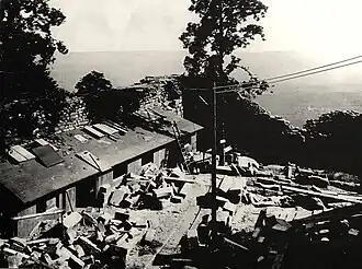 ![]() Vorderansicht, vor dem Eingange“ „Hohkönigsburg bei Schlettstadt, während der Wiederherstellung. Vorderansicht, vor dem Eingange“ | |