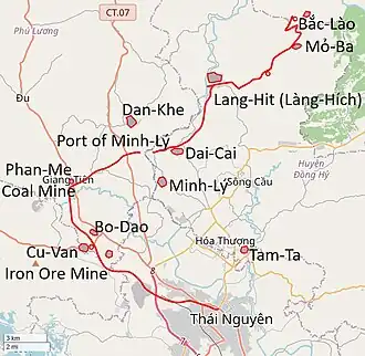 Westlich des Sông Cầu gab es eine weitere Feldbahnstrecke vom Flusshafen Minh-Lý am Westufer des Sông Cầu über die Kohlegrube Phan-Me, das Bergwerk Bo-Dao, die Eisenerzmine Cu-Van zum Flusshafen von Thái Nguyên.[1]