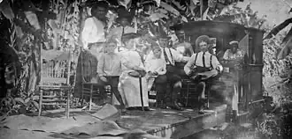 ![]() in eine Bananenplantage Dampfbetriebene Feldbahn, vermutlich bei einer Ausflugsfahrt in eine Bananenplantage | |