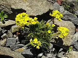 - Alpen-Felsenblümchen (Draba alpina L.):[2] Es ist zirkumpolar in Grönland sowie Kanada verbreitet und kommt in Europa auf Spitzbergen, in Skandinavien und im nördlichen Russland vor, aber nicht in den Alpen.[14][3][12][5]