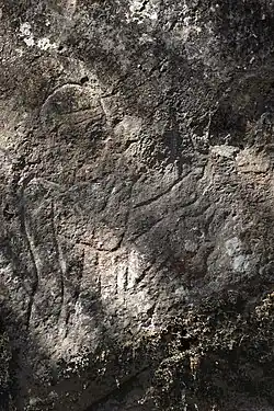 Über den Köpfen sind Inschriften in Luwischen Hieroglyphen angebracht, wobei den linken Gestalten jeweils eine Zeichengruppe zugeordnet werden kann, während die der rechten nicht erhalten ist. Die Lesung bereitet aufgrund des schlechten Zustandes allerdings Schwierigkeiten. Lediglich der Name der linken, weiblichen Figur kann als Ma-na-a-za/i gedeutet werden, sie wird weiter als Tochter Lubakkis, des Sohnes des Armeeschreibers bezeichnet. Eine weitere Hieroglyphengruppe befindet sich links der drei, sie nennt eine weitere Person, nach J. D. Hawkins der Leibgardist Zida, Diener Hattušilis, des Großkönigs, des Helden. Da dieser nicht abgebildet ist, handelt es sich möglicherweise um den Stifter des Reliefs.