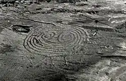 Die anderen Figuren sind typisch für bronzezeitliche Landwirtschaftsritzungen (etwa 1800 bis 500 v. Chr.). Hier handelt es sich hauptsächlich um Boote, aber auch um Pferde, Spiralfiguren und Cup-and-Ring-Markierungen.[2][7] Insgesamt sind im westlichen Teil etwa 150 Schiffe, 59 Pferde, 1 Hund, 15 Fußabdrücke und 11 Cup-and-Ring-Markierungen aus der Bronzezeit zu sehen. Der östlichste Teil des Feldes enthält 43 Schiffe, 17 Fußabdrücke, 5 Pferde, 1 Hund und 3 Cup-and-Ring-Markierungen.[6][8]