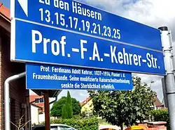 - ↑ Ferdinand Adolf Kehrer: Jahresbericht aus der Heidelberger Frauenklinik 1899. In: Aerztliche Mitteilungen aus und für Baden. Bd. 54, Nr. 15, 1900, ZDB-ID 502533-3, S. 3.