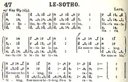 - ↑ Albert Brutsch: From Work Song to National Anthem. In: Lesotho. Notes and Records 9 (1970/1971), S. 8.