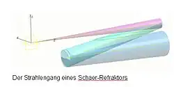 - zwei in den Strahlengang gelegte geneigte Spiegel (in der Regel um 45°)