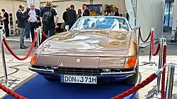 1975 übernahm Luigi Chinetti einen GTS/4, der bei den Dreharbeiten zu dem Spielfilm A Star Is Born stark beschädigt worden war (Fahrgestellnummer 16467). Chinetti beauftragte erneut Giovanni Michelotti mit dem Entwurf einer neuen Karosserie. Michelotti gestaltete einen keilförmigen, glattflächigen Aufbau, der Beobachter an den Triumph TR7 erinnerte.[78] Anders als sein ein Jahr älterer Entwurf für das Chassis 15965 hatte dieser Aufbau ein zurückklappbares Stoffverdeck und keinen Überrollbügel.