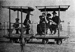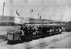 Es gab sieben, seitlich offene, zweiachsige Personenwagen mit Sitzplätzen für jeweils 4 oder 5 Fahrgäste unter einem mit zum Schutz vor Sonne und Regen mit gelb-schwarz gestreiften Vorhängen ausgerüsteten Dach. An beiden Enden gab es eine Plattform für den Kutscher, der über eine Kurbel die Bremsen betätigte.