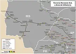 Ferrovia Novoeste S.A. war die Bahngesellschaft, die im Jahr 1996 die Konzession für den Betrieb der Malha Oeste (westliches Streckennetz) von der ehemaligen staatlichen Bahngesellschaft Rede Ferroviária Federal (RFFSA) erhielt. Das Streckennetz umfasste praktisch alle Bahnstrecken der ehemaligen Bahngesellschaft Estrada de Ferro Noroeste do Brasil. Im Jahr 2002 gründeten Ferrovia Bandeirantes S.A. (Ferroban) zusammen mit Ferrovias Norte do Brasil S.A. (Ferronorte) die neue Bahngesellschaft Brasil Ferrovias. Zuletzt im Jahr 2006, wurde ein Zusammenschluss von Brasil Ferrovias und Novoeste mit der Bahngesellschaft América Latina Logística (ALL) durch Aktientausch möglich gemacht.