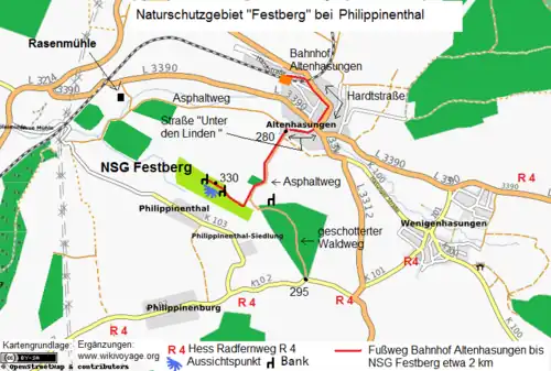 - ↑ Regierungspräsidium Kassel: Maßnahmenplan …… zum FHH-Gebiet “Festberg bei Philippinenthal” (FHH-Gebiet-Nummer 4621-305); Kassel, Mai 2015 (PDF; 2,0 MB)