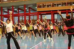 - Turnerisch-gymnastische Gruppenübung auf einer Bodenfläche von 20 × 14 m