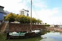 Blick über den Rheinkran am Alten Hafen in Richtung der Zitadelle (links), Zeichnung von Jan de Bisschop, 17. Jahrhundert