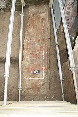 Contregardeabschnitt der Festung Düsseldorf im Hof des Schumannhauses Düsseldorf während einer Ausgrabung