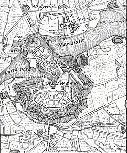 Die Festung Rendsburg wurde ab 1690 zur zweitgrößten Festung im Königreich Dänemark ausgebaut. Seit 1867 in der preußischen Provinz Schleswig-Holstein, soll Rendsburg am Vorabend des Ersten Weltkriegs nach der Garnison Königsberg in Preußen und der Festung Metz die größte deutsche Garnison gewesen sein.[1]