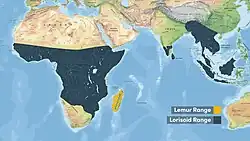 - Teilordnung Loriartige (Lorisiformes) mit zwei Familien in Afrika und Asien