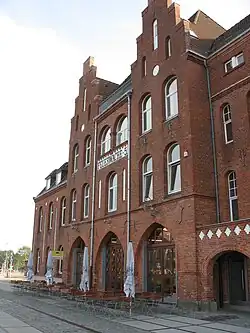 Das Gebäude alte Feuerwache 5 und Zollamt in Bremen-Walle, Ortsteil Überseestadt, Waller Stieg 1 bis 5, am Holzhafen nahe dem Überseetor stammt von 1906.