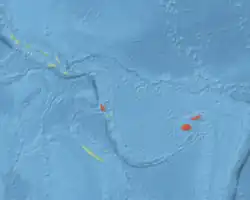 Vorkommen der Fidschi-Bulldoggfledermaus sind zurzeit nur von den Inseln Espiritu Santo und Malo des Inselstaats Vanuatu und von den zu Fidschi gehörenden Inseln Vanua Levu und Taveuni bekannt. Das Verbreitungsgebiet war vermutlich größer. Auf den Inseln Viti Levu (Fidschi) und ʻEua (Tonga) wurden Überreste in Höhlen gefunden, die Art ist aber vermutlich seit Besiedelung der Inseln ausgestorben.[1] Von der Art sind nur drei Quartiere in Höhlen bekannt. Aufgrund des kleinen Verbreitungsgebiets, der kleinen Population sowie des starken anthropogenen Einflusses (Rodung der Wälder, Störung der Wochenstuben in den Höhlen sowie Abfang von Individuen) wird die Fidschi-Bulldoggfledermaus von der IUCN als „stark gefährdet“ („endangered“) geführt.[1][3]