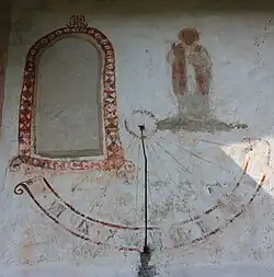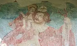 Die Kirche stammt im Kern aus dem zwölften Jahrhundert und ist ein kleiner romanischer Saalbau mit eingezogener Rundapsis, Dachreiter, Holzschindeldeckung und westlicher, hölzerner Vorlaube. Die ursprünglich hoch angesetzten Fenster wurden vermauert und im 13. Jahrhundert durch tiefer liegende, größere ersetzt. Die südliche Fassade dominiert ein Christophorusfresko aus dem 16. Jahrhundert. Das Langhaus besitzt eine hölzerne Flachdecke und eine Holzempore mit Schablonenmalerei, die eine Stifterinschrift aus dem Jahre 1593 aufweist. Von 1964 bis 1966 wurden im Gewölbe der Apsis Fresken aus der Mitte des 13. Jahrhunderts freigelegt. Dargestellt ist eine Kreuzigungsgruppe mit Maria und Johannes, flankiert von zwei kleinen knienden Stifterfiguren. Rechts davon isoliert ist eine Märtyrerin zu sehen.