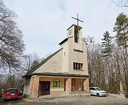 Im Zuge einer Pfarrvisitation am 17. Mai 1949 durch Erzbischof Kardinal Theodor Innitzer wurde der Bau einer kleinen Kirche angedacht. Emma Steingassner, die Witwe des 1947 verstorbenen Besitzers der Ziegelei Martin Steingassner, wiederum hat eine kleine Waldkapelle angedacht, dazu wurde bereits eine Keramik des hl. Martin von Prof. Eltz beauftragt. Nach einem ersten Entwurf von Karl Holey, welcher als zu groß erschien, entschied sich die Baukommission für einen kleineren Entwurf des Architekten Erwin Plevan. Am 8. Juli 1956 erfolgte mit Alois Penall, Direktor des erzbischöflichen Bauamtes, die Grundsteinlegung. Am 15. August 1957 zum Fest Mariä Himmelfahrt wurde die Kirche von Friedrich Pfennigbauer, Abt vom Stift Lilienfeld, geweiht. 1958 wurde eine Sandsteinfigur Unbefleckte Empfängnis des Bildhauers Franz Barwig aus der Neusimmeringer Pfarrkirche hierher übertragen. 1960 wurde bei der Kirche ein Friedhof eröffnet.
