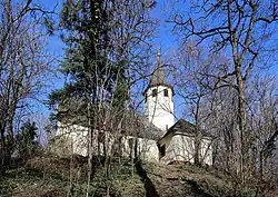 Die Kirche ist ein schlichter barocker Bau mit geglätteter Fassade. Das Langhaus ist niedrig und weist kleine Rundbogenfenster auf. Über dem Chor befindet sich der achteckige Ostturm mit kleinen Schallfenstern. Darüber ist ein Pyramidenhelm.[2]