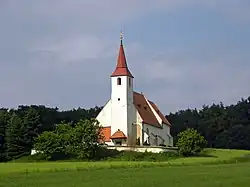 Das im Kern wohl spätromanisch-frühgotische Langhaus wurde in der zweiten Hälfte des 14. Jahrhunderts um ein Seitenschiff, einen Chor und eine Sakristei erweitert. Im Jahr 1754 erfolgten barocke Veränderungen.