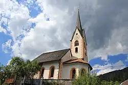 Die kleine spätgotische Anlage besteht aus einem ungegliederten Langhaus und einem niedrigeren, eingezogenen Chor mit Fünfachtelschluss. Der im 14./15. Jahrhundert errichtete Turm an der Nordseite mit einer Glocke aus der Mitte des 14. Jahrhunderts wird von einem Spitzgiebelhelm bekrönt. Die Wandgemälde an der Südwand mit den Darstellungen der Heiligen Christophorus und Florian sowie einer Marienkrönung entstanden in der zweiten Hälfte des 15. Jahrhunderts. Der Vorhallenzubau stammt aus dem 20. Jahrhundert. Im aus neuerer Zeit stammenden Rundbogen des profilierten Westportals haben sich Teile von Blendmaßwerk des einstigen Tympanons erhalten. In der Vorhalle befinden sich ein gemauerter Tisch für Opfergaben und ein spätgotischer Weihwasserstein.