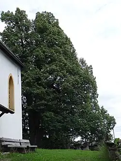 Die gotische Kirche steht neben einer uralten Linde. Der Platz bei der Kirche bietet einen weiten Blick auf den Lienzer Talboden.