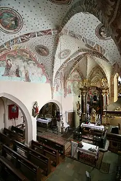 Die gotische Kirche wurde im Anfang des 15. Jahrhunderts erbaut und zeigt bemerkenswerte gotische Fresken aus der Zeit um 1440/1450.