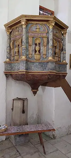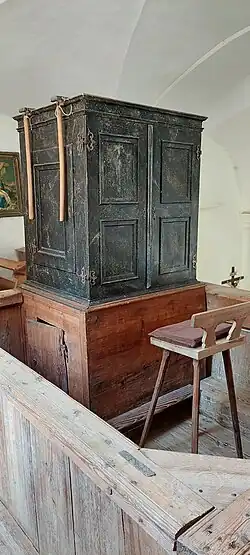 Das Orgelpositiv mit einem Manual und vier Registern lässt sich durch eine Inschrift auf das Jahr 1780 datieren; es steht auf der Empore im südwestlichen Teil des Langhauses.[15]