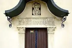 In der Kirche befindet sich ein barockes Votivbild, das die Heiligen Leonhard und Wendelin zeigt. Im Chor befindet sich ein Grabstein aus rotem Marmor mit Inschrift und Wappen sowie Rollwerkrahmung. Die Inschrift lautet „Pernstorffer 1590.“[2]