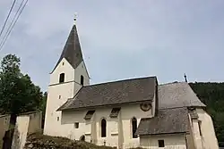 Vom romanischen Kirchenbau haben sich die Mauern des Langhauses erhalten. Über dem jetzigen Gewölbe sind die Ansätze der ursprünglichen flachen Balkendecke sichtbar. Ein weiteres Relikt der Romanik sind die Reste eines Christophorusfreskos aus dem 13. Jahrhundert. Der eingezogene Chor mit Fünfachtelschluss und Steinplattldeckung stammt aus der Gotik. Unter dem Chor befindet sich eine gotische Beinkammer. Der gotische Turm stürzte 1987 ein und wurde 1989 wiedererrichtet. Betreten wird die Kirche durch ein einfach gekehltes gotisches Portal mit schmiedeeisernem Schlüsselfang.