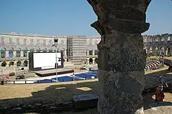 Seit 1955 wird auf dem Filmfestival Pula der Filmpreis Goldene Arena in verschiedenen Kategorien vergeben.[4] Die erste Goldene Arena für den besten Film (Hauptpreis des Festivals) und die beste Regie ging 1955 an František Čáp für Trenutki odločitve. Weitere vergebene Preise des Festivals sind unter anderem der Preis Zlatna Breza (Goldene Birke) für den besten Nachwuchsregisseur, der Publikumspreis Zlatna vrata Pule (Das Goldene Tor von Pula) sowie seit 1995 der Breza-Preis als Nachwuchsauszeichnung.[5] Die Preisverleihungen werden im traditionsreichen Kino Valli durchgeführt. Es gibt im Vorfeld keine Nominierungen. Die Preisträger werden während des Festivals live bekannt gegeben. Die Jurys bestehen aus Fachleuten; die für den kroatischen Filme zuständige setzt sich aus fünf bis sechs Personen und die für die internationalen Filme aus drei Personen zusammen.