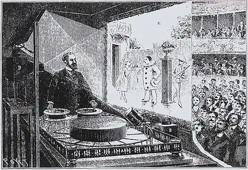Bis zur Einführung der Xenon-Gasentladungslampe, die stundenlang brennen kann, verlangte die Kinofilmvorführung, dass jemand Kohleelektroden in die Bogenlampen der Laufbildwerfer einspannt, ihren Abbrand überwacht und sie rechtzeitig ersetzt. Auch weil die feuergefährlichen Filmportionen bis zum offiziellen weltweiten Ablösedatum 1. Januar 1951 gesetzlich auf 2000 Fuß (gut 600 Meter) begrenzt waren, mussten die Filmvorführer den Film mit abwechselndem Lauf von wenigstens zwei Projektoren zusammensetzen.