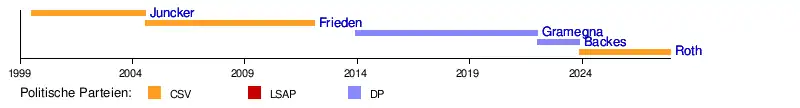 | Pierre Gramegna | DP | 4. Dezember 2013 | 5. Januar 2022 | |