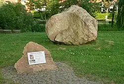 - ↑ a b Gifhorner Relikt aus der Eiszeit findet neuen Platz in der 200 Meter entfernten Innenstadt - Kran hebt Riesenfindling aus Baugrube, Aller-Zeitung vom 26. August 2014