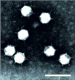 TEM-Aufnahme von Virionen des Flavobacterium- | ||||||||||||||||