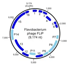 - Flavobacterium-Phage FLiP (englisch Flavobacterium phage FLiP)